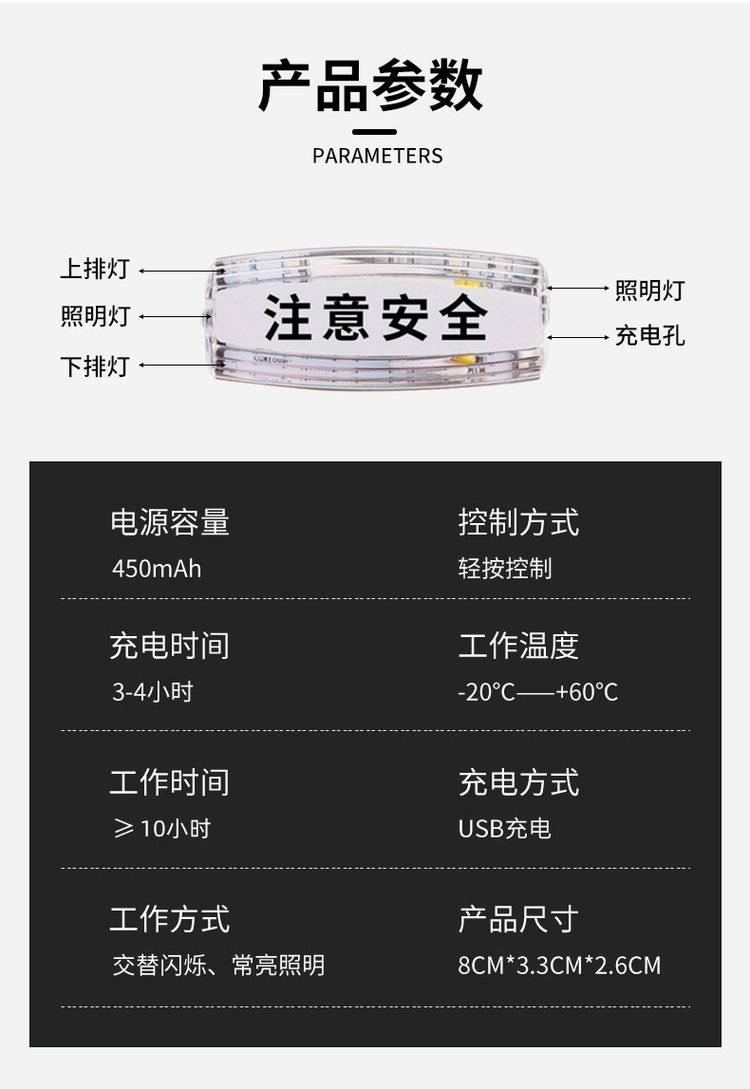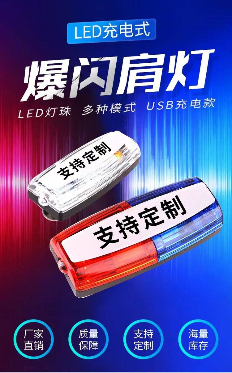 红蓝充电肩夹式肩灯户外骑行夜跑信号灯LED可充电式闪光灯